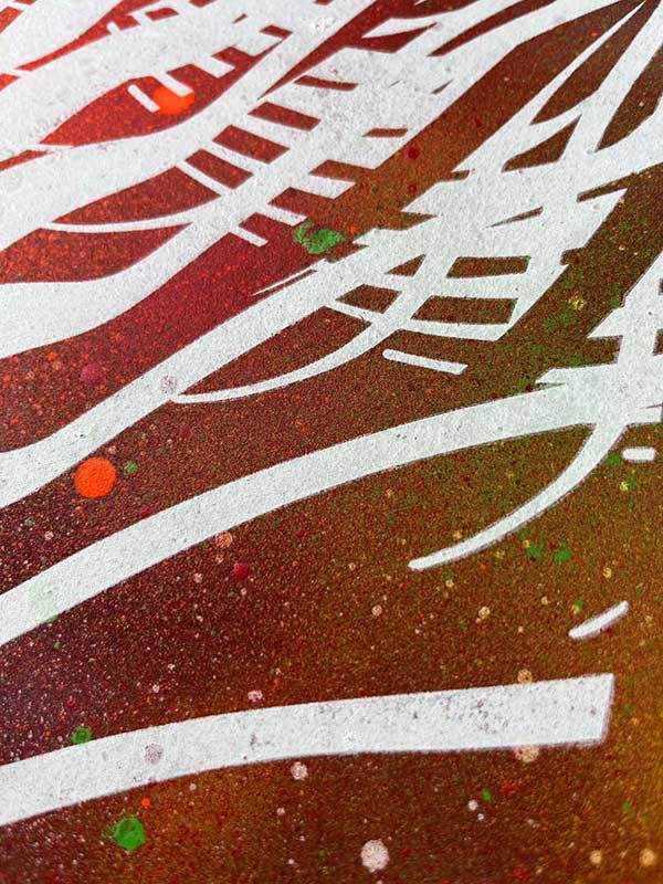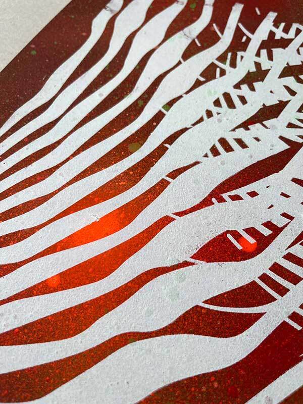 Hand-made screen-printing, spray on paper. Size: 30x40 cm.