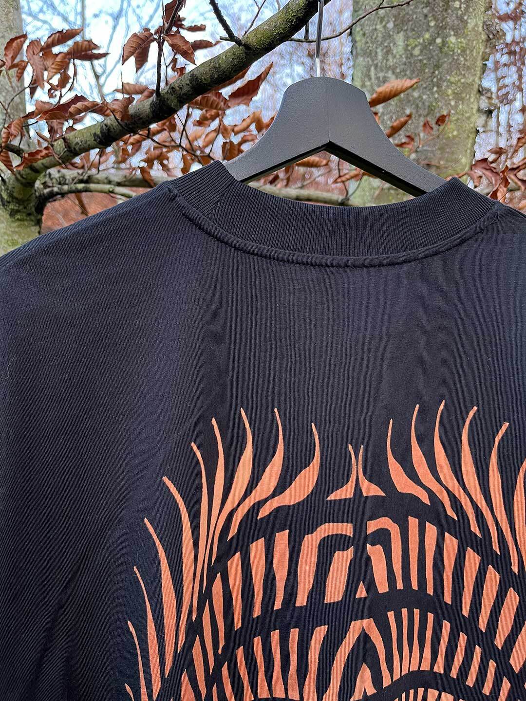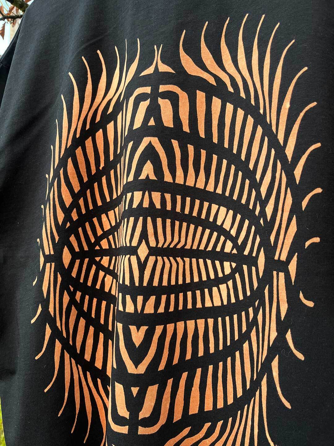 Oversize, 100% bawełna organiczna, vegan approved, wzór ręcznie wybielany z tyłu.