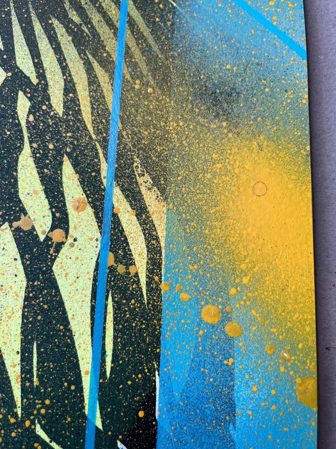 Spray, marker, sitodruk. Wymiary: 30x40 cm.